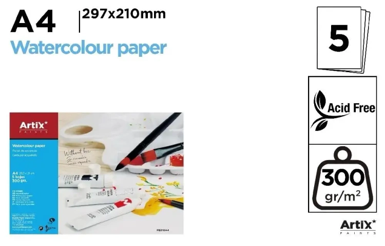 Blok zawiera 5 arkuszy wysokiej jakości papieru o gramaturze 300 g/m². Dzięki temu jest świetnie przystosowany do różnorodnych technik akwarelowych, zapewniając odpowiednią chłonność i trwałość.