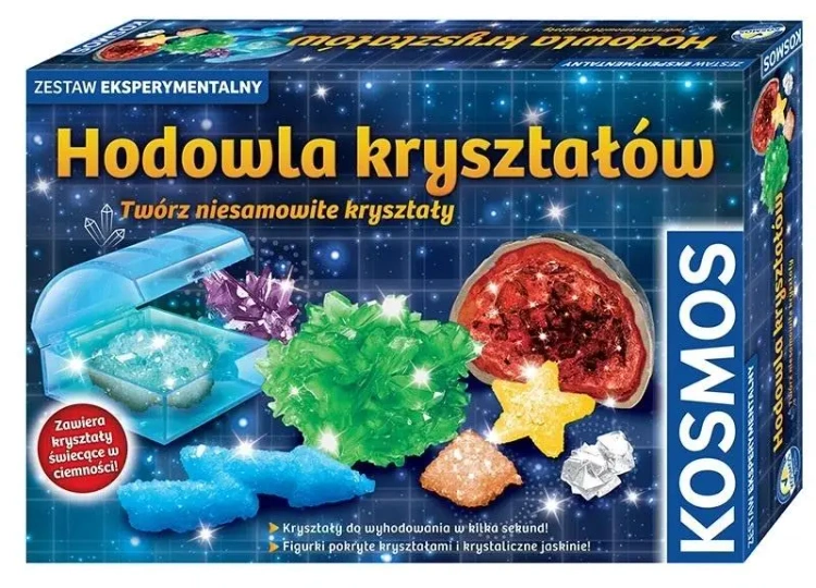 Niesamowity zestaw do produkcji własnych kryształów! Połyskujących kolorowym światłem i świecących w ciemności. Arcyciekawe połączenie nauki z zabawą. W zaledwie kilka sekund stworzysz kryształowe cuda natury, jednocześnie poznając ich tajemnice.