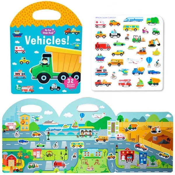 Książeczka z naklejkami wielorazowego użytku. W zestawie rozkładana książeczka (69x30 cm) oraz 32 naklejki. Wymiary opakowania: 23 x 1 x 30 cm Wiek 3+