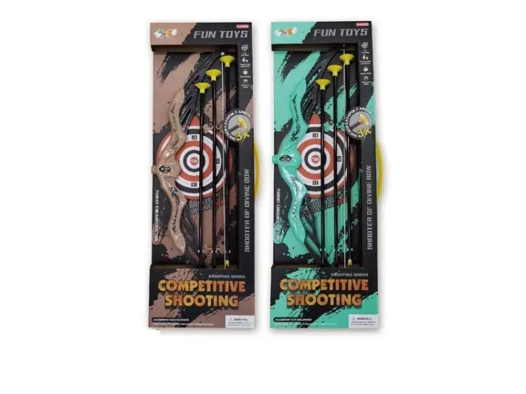 W zestawie: dł. 56 cm, 3 strzały na przyssawki, funkcje: z opakowania można wyciąć tarczę i strzelać do niej strzałami, strzały na przyssawki przyczepiają się do płaskiej, gładkiej powierzchni, wym. Opak. 20 x 59,5 x 4 cm, 3+
