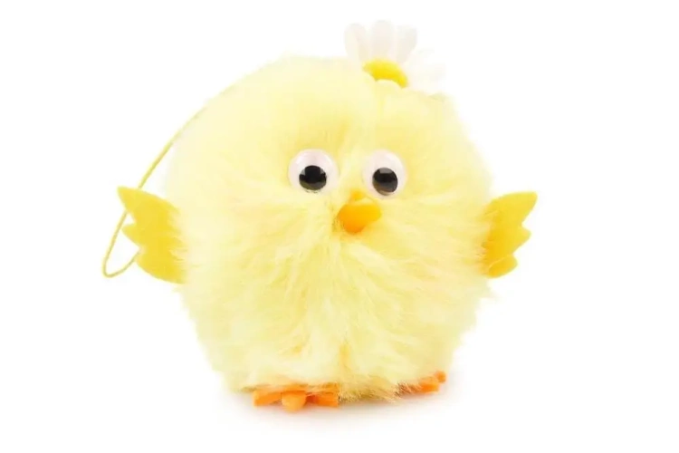 Opis: wym. kurczaczka: 7,5 x 5 x 6 cm, posiada zawieszkę, materiał: tekstylia i plastik
