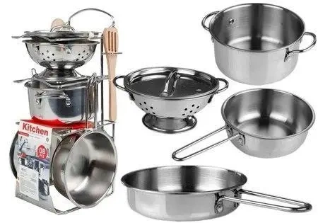 Zestaw garnków i patelni ze stali nierdzewnej 8el - Leantoys