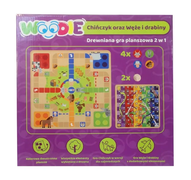 Gra drewniana 2w1 Chińczyk/Węże i drabiny Woodie A76-2