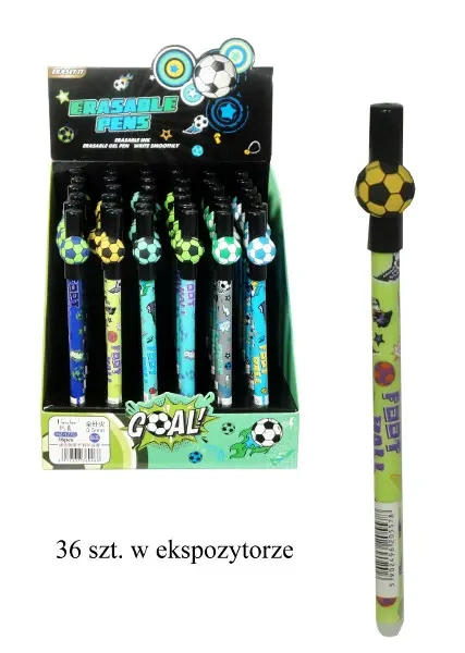 Długopis zmazywalny z zamknięciem i z piłkarskim motywem