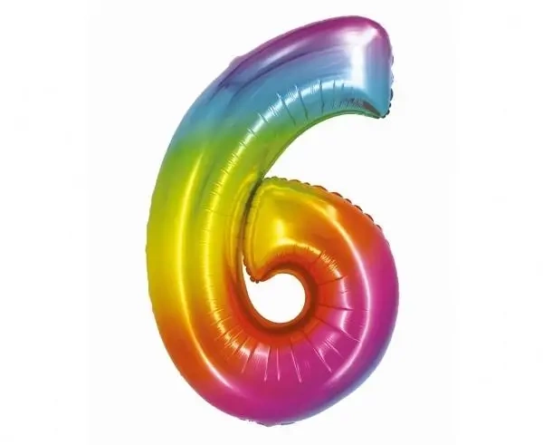 Balon foliowy cyfra 6 tęczowa Smart 76cm - Godan