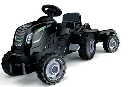Traktor z nowym designem na pedały w zestawie z przyczepką. Regulowane siedzisko, stabilna i wytrzymała konstrukcja, klakson. Siedzisko na wysokości: 37cm. Wyprodukowany we Francji.