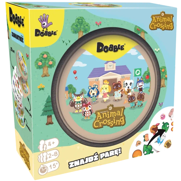 K.K., Tom Nook, Isabelle, Audie, Mabel, Cyrus i inni zapraszają do wspólnej zabawy! Zebrali najważniejsze rzeczy, a po drodze zawitali na karty Dobble, by cieszyć najmłodszych i zachęcać ich do rozwijania refleksu i spostrzegawczości. Na 55 okrągłych kartach znajdziemy zarówno kultowe postacie, jak i charakterystyczne przedmioty. Czy uda Ci się wypatrzyć identyczne obrazki zanim zrobią to przeciwnicy?