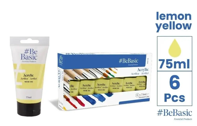 Farba akrylowa - cytrynowy żółty 75ml (6szt) - BeBasic