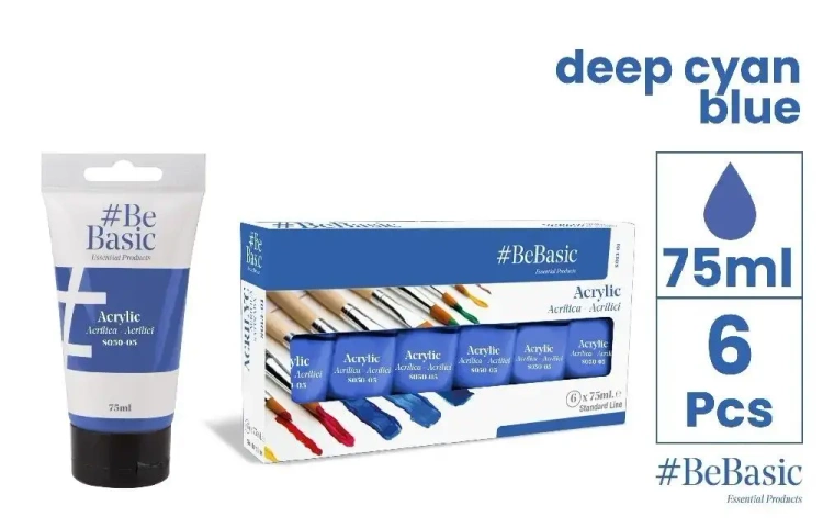 Farba akrylowa - niebieski cyjan 75ml (6szt) - BeBasic