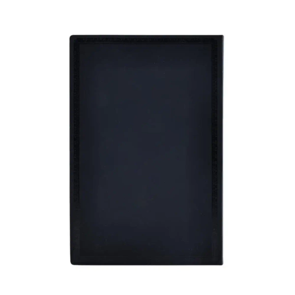 Klasyczna czarna okładka z delikatnie tłoczoną ramką na brzegu oprawy