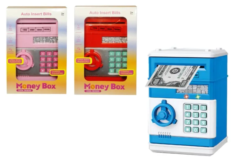 Sejf to bardzo atrakcyjna alternatywa dla tradycyjnej skarbonki. Można w nim umieścić zarówno banknoty, jak i monety i inne rzeczy. Mechanizm w środku sam wciągnie papierowy banknot gdy tylko zaczniesz go wkładać. Skarbonka sejf to bardzo dobry pomysł na naukę oszczędzania pieniędzy. Sejf zabezpieczony jest specjalnym kodem. Kod dziecko może nadać samodzielnie. Sejf posiada efekty świetlne. Zabawka działa na baterie typu 3xAA. Baterie nie są załączone w zestawie. Cena dotyczy jednej sztuki.
