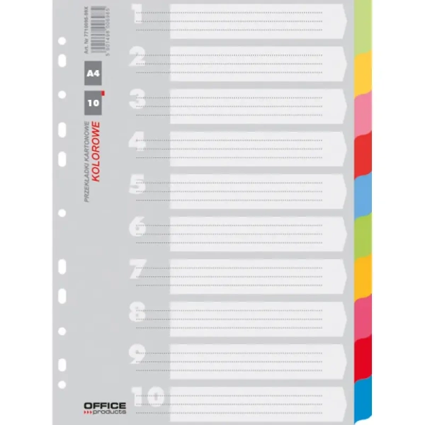Przekładki A4 Office Products karton 223x297mm 10 kart mix kolorów