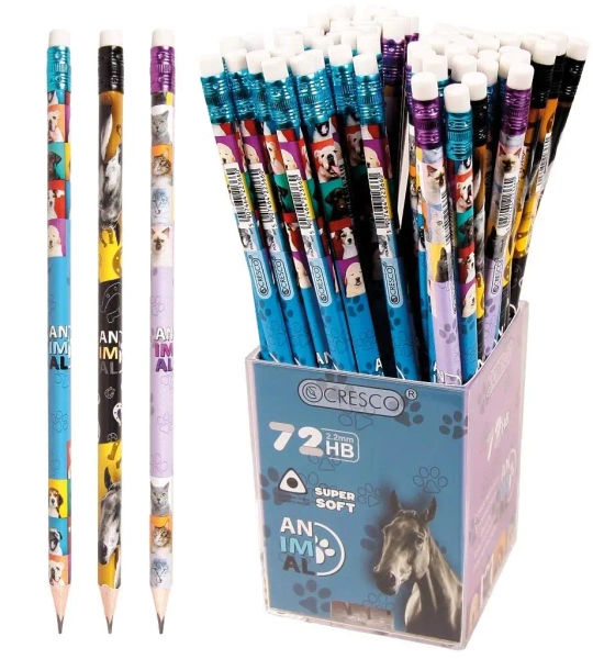 Ołówek ANIMAL HB z gumką: twardość HB, ergonomiczny trójkątny kształt, odporny na łamanie, ciekawa zwierzęca grafika. W opakowaniu 72szt