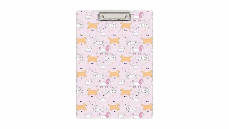 Wykonana z folii PVC z pełnym, ozdobnym nadrukiem, wewnątrz usztywniona tekturą. Wyposażona w sprężysty mechanizm zaciskowy służący do przytrzymywania kartek papieru. Służy jako sztywna podkładka do pisania podczas konferencji, spotkań, jak i codziennej pracy. Format A4.
