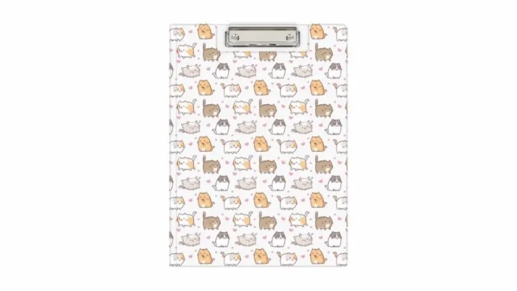 Wykonana z folii PVC z pełnym, ozdobnym nadrukiem, wewnątrz usztywniona tekturą. Wyposażona w sprężysty mechanizm zaciskowy służący do przytrzymywania kartek papieru. Wewnątrz, na całej szerokości, podłużna kieszeń z miejscem na długopis na zgięciu okładek. Wersja zamykana, z okładką. Służy jako sztywna podkładka do pisania, z funkcją teczki, podczas konferencji, spotkań, jak i codziennej pracy. Format A4.