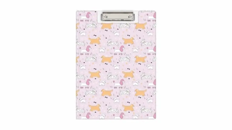 Wykonana z folii PVC z pełnym, ozdobnym nadrukiem, wewnątrz usztywniona tekturą. Wyposażona w sprężysty mechanizm zaciskowy służący do przytrzymywania kartek papieru. Wewnątrz, na całej szerokości, podłużna kieszeń z miejscem na długopis na zgięciu okładek. Wersja zamykana, z okładką. Służy jako sztywna podkładka do pisania, z funkcją teczki, podczas konferencji, spotkań, jak i codziennej pracy. Format A4.