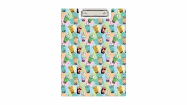 Wykonana z folii PVC z pełnym, ozdobnym nadrukiem, wewnątrz usztywniona tekturą. Wyposażona w sprężysty mechanizm zaciskowy służący do przytrzymywania kartek papieru. Wewnątrz, na całej szerokości, podłużna kieszeń z miejscem na długopis na zgięciu okładek. Wersja zamykana, z okładką. Służy jako sztywna podkładka do pisania, z funkcją teczki, podczas konferencji, spotkań, jak i codziennej pracy. Format A4.
