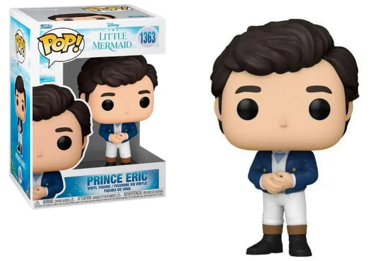 Figurka Funko Pop Disney The Little Mermaid Prince Eric to kolekcjonerski model inspirowany postacią księcia Eryka z filmu ?Mała Syrenka? od Disney?a. Przedstawia go w charakterystycznym stroju ? granatowej marynarce z ozdobnymi guzikami, białych spodniach i czarnych butach. Jego elegancka poza i subtelne detale sprawiają, że figurka doskonale oddaje osobowość bohatera.