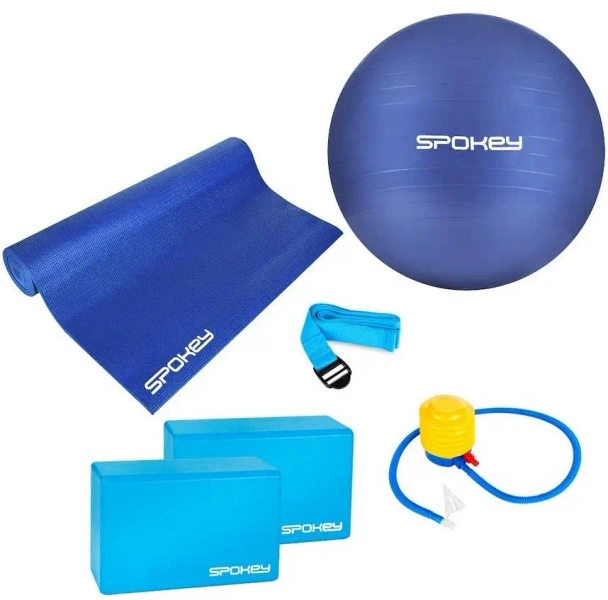 Zestaw do jogi składający się z czterech elementów: maty do jogi z antypoślizgowej pianki PVC, dwóch kostek do jogi ułatwiających wykonywanie zaawansowanych pozycji, piłki gimnastycznej o średnicy 65 cm oraz paska do jogi. To świetne wsparcie dla każdego początkującego, jak zaawansowanego praktyka jogi.
