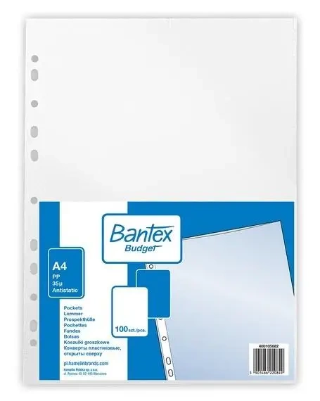 Koszulka groszkowa A4/35mic. PP Budget 100szt - Bantex