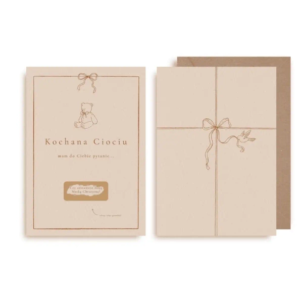 Wyjątkowy sposób na zadanie tego ważnego pytania! Kartka zdrapka w minimalistycznym, retro stylu to subtelny, a zarazem efektowny sposób, by poprosić bliską osobę o bycie Chrzestną. Wystarczy zdrapać oznaczone miejsce, by odkryć wzruszające pytanie.