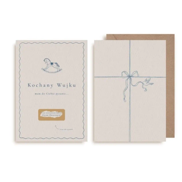 Zapytaj w niepowtarzalny sposób, czy bliska osoba zostanie Chrzestnym Twojego dziecka! Ta wyjątkowa kartka zdrapka to piękny i emocjonalny sposób na przekazanie ważnej wiadomości. Wystarczy zdrapać złoty element, aby odkryć ukryte pytanie.