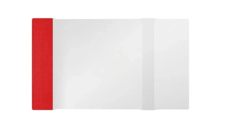 Wykonana z przezroczystej folii PVC. Zakładki w okładkach występują w 4 kolorach: czerwony, zielony, niebieski, żółty. Zakładka po stronie nieregulowanej w podstawowych kolorach. Uskok zapobiegający zaginaniu się okładki. Tłoczenie z oznaczeniem na każdej sztuce. Z jednej strony okładki możliwość regulowania. Łatwoodlepny kod kreskowy na każdej sztuce w opakowaniach w wersji kodowanej.