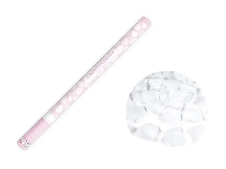 Tuba strzelająca sztucznymi płatkami róż w kolorze białym, długość 80 centymetrów.