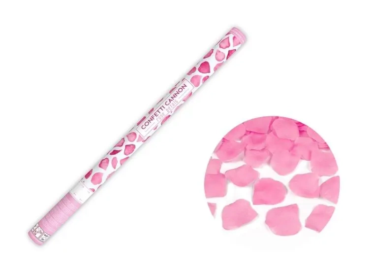 Tuba strzelająca sztucznymi płatkami róż w kolorze różowym, długość 80 centymetrów.