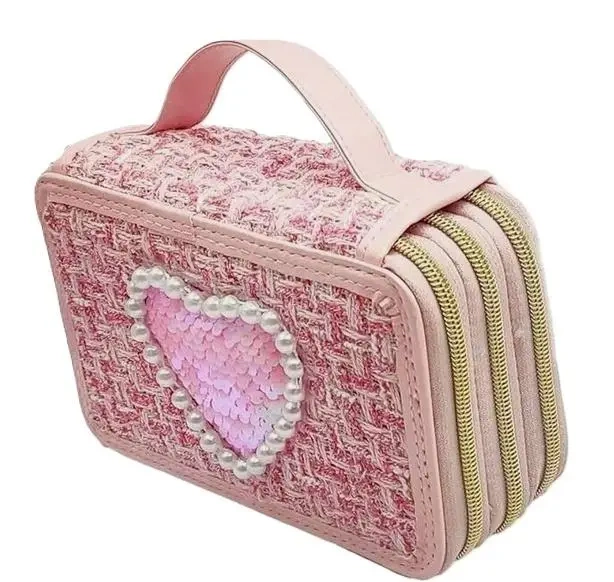 Stylowy piórnik Girabrilla wykonany jest z modnej tweedowej tkaniny, to doskonały wybór dla każdej dziewczynki, która lubi łączyć modę z praktycznością. Perłowe zdobienia i połyskujące serduszko nadają mu wyjątkowego charakteru. Piórnik posiada 3 pojemne przegrody zapewniają idealny porządek i łatwy dostęp do wszystkich przyborów szkolnych. W środku znajdziesz wszystko, czego potrzebujesz do nauki: kredki i pisaki w pięknych kolorach,ołówek, długopis i temperówkę, gumkę do ścierania i linijkę.