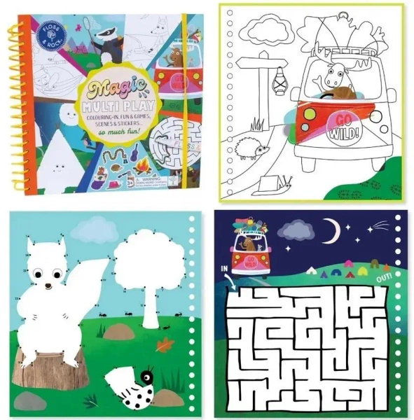 Magiczna kolorowanka wodna z zadaniami przenosi dzieci w świat kolorów i dobrej zabawy. Ta książeczka oferuje nie tylko możliwość malowania, ale także różnorodne zadania do wykonania za pomocą wodnego pisaka. W jej wnętrzu znajdziesz ciekawe zadania typu połącz kropki, labirynty, dopasuj pary czy znajdź różnice, które rozwijają umiejętności logicznego myślenia i spostrzegawczość. Ale to nie koniec atrakcji! Dodatkowo książeczka zawiera naklejki wielokrotnego użytku, które dzieci mogą dowolnie naklejać na dołączoną planszę, tworząc własne kompozycje i scenki. Całość jest praktycznie zaprojektowana - spiralna oprawa, grube karty i zamknięcie na gumkę sprawiają, że książeczka jest łatwa do przechowywania i zabierania gdziekolwiek chcesz.