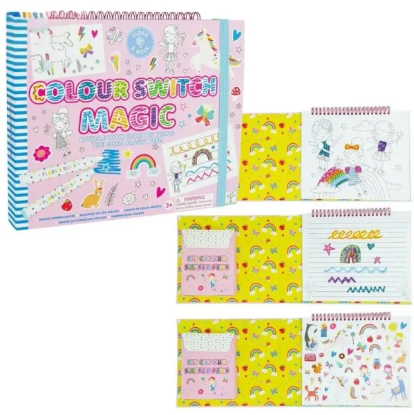 Zestaw Magia Kolorów to niekończąca się kreatywna zabawa! Dzięki magicznemu pisakowi możesz zamieniać kolory i tworzyć niesamowite wzory. Idealny do nauki pisania, rysowania i rozwijania zdolności manualnych! Każdy zestaw zawiera 10 stron do rysowania, 5 stron do kolorowania, 6 pisaków zmieniających kolor, 1 magiczny pisak, 5 stron w linie do pisania oraz 2 strony z naklejkami. Zestaw Magia Kolorów to nie tylko wyjątkowe pisaki, ale także książeczka pełna kreatywnej zabawy!