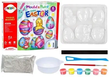 Zestaw Kreatywny DIY Gips Odlewy Świąteczne Malowanie Jajek Wielkanoc Twój maluch jest małym artystą? Uwielbia malować i ozdabiać. Mamy coś dla niego! Zestaw do tworzenia odlewów gipsowych z farbami pozwoli mu odrywać świat i samodzielnie tworzyć jego barwy. Zabawka nauczy koncentracji na odlewie oraz umiejętności uczenia się i łatwego przyswajania wiedzy. Małe elementy ćwiczą precyzję i koordynację, co zaprocentuje również w szkole. Zestaw pozwala na samodzielne stworzenie gipsów poprzez dołączony do zestawu proszek gipsowy. Foremki mają wzory jajeczek wielkanocnych z kurczaczkiem bądź króliczkiem. Kolejną czynnością będzie pomalowanie farbami jajeczek, a dołączone do zestawu magnesy pozwolą na zawieszenie pięknych odlewów na lodówkę. Idealnie nawiązują do Świąt Wielkiej Nocy. Kupując ten zestaw, pozwolisz maluchowi stworzyć własne ozdoby domowe i poczuć zbliżające się święta. Elementy zestawu: - forma 6 różnych wzorów - proszek gipsowy - magnes - pręt do mieszania - kubek do mieszania - 6 kolorów farb - pędzel do malowania - szczegółowe instrukcje Wymiary opakowania: 27 cm x 23 cm x 6 cm Zabawka odpowiednia dla dzieci powyżej 5 roku życia. Posiada certyfikat CE.