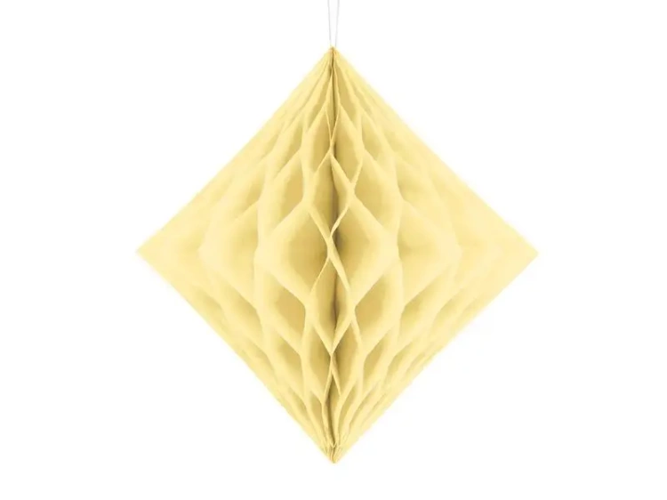 Diament bibułowy w kolorze kremowym, wysokość ok. 20 cm.