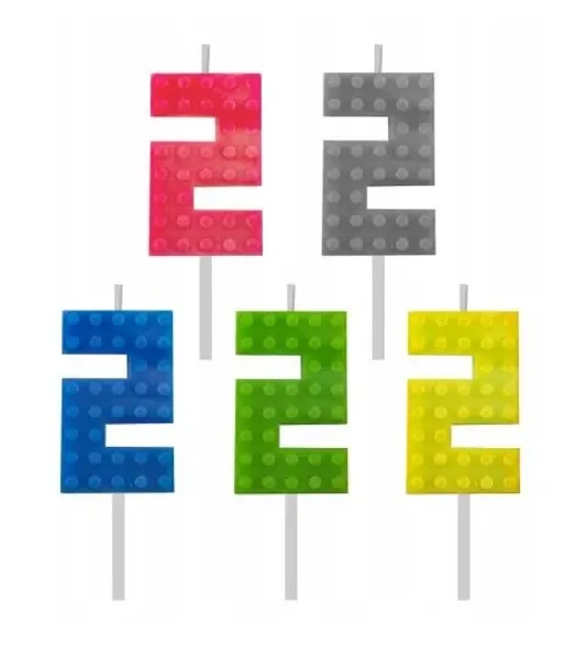 Świeczka urodzinowa Klocki cyfra 2 5,5cm MIX - Godan