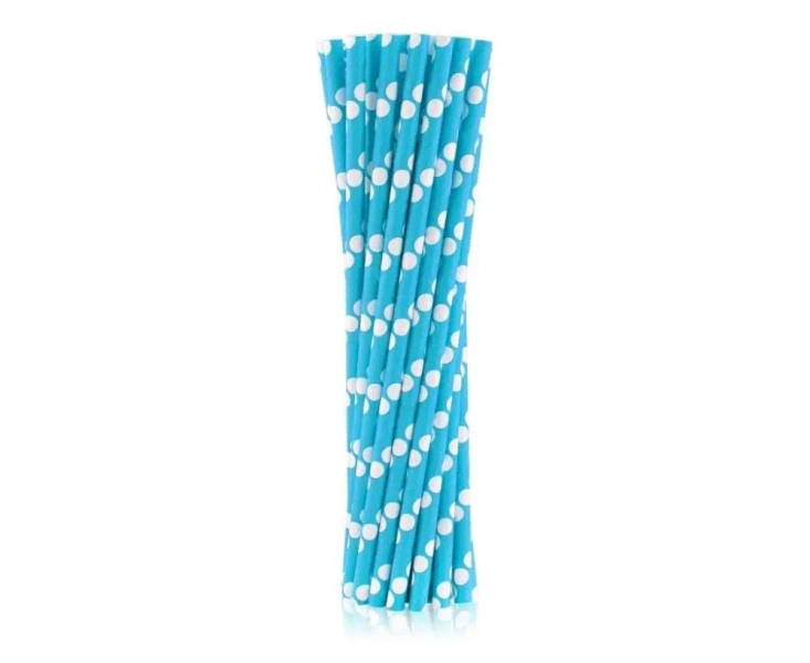 SŁOMKI PAPIEROWE BŁĘKITNE W BIAŁE GROSZKI.