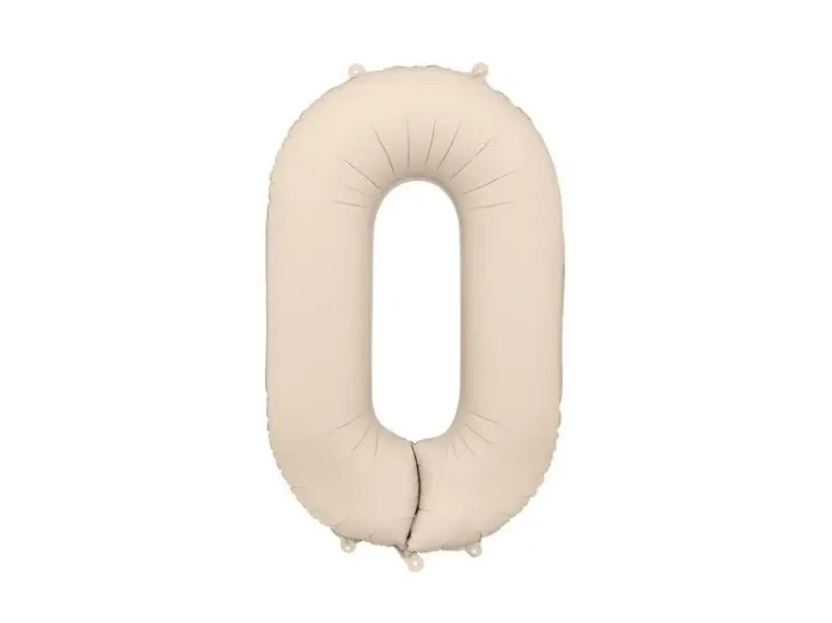 Balon foliowy matowy Cyfra 0 w kolorze jasnobeżowym, rozmiar przed napompowaniem ok. 100 cm (39''), rozmiar po napompowaniu ok. 86 cm (34''). Do napompowania powietrzem i helem. Zestaw zawiera słomkę. Balon jest samouszczelniający się. Posiada haczyki ułatwiające montaż balona do dekoracji.