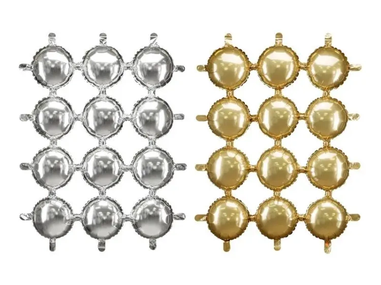 Tło foliowe balonowe Koła dwustronne glossy, z jednej strony w kolorze złotym, z drugiej strony w srebrnym. Wymiary przed napompowaniem ok. 100 x 136 cm (39,5 x 53,5''), wymiary po napompowaniu ok. 78 x 107 cm (30,5 x 42''). Do napompowania powietrzem. Zestaw zawiera słomkę.