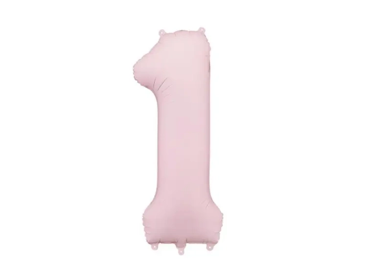 Balon foliowy matowy Cyfra 1 w kolorze jasnoróżowym, rozmiar przed napompowaniem ok. 100 cm (39''), rozmiar po napompowaniu ok. 86 cm (34''). Do napompowania powietrzem i helem. Zestaw zawiera słomkę. Balon jest samouszczelniający się. Posiada haczyki ułatwiające montaż balona do dekoracji.