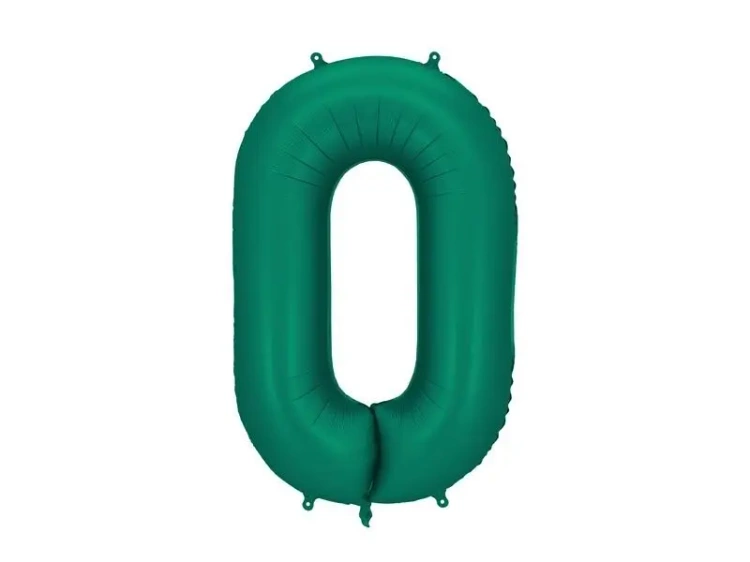 Balon foliowy satynowy Cyfra 0 w kolorze butelkowej zieleni, rozmiar przed napompowaniem ok. 100 cm (39''), rozmiar po napompowaniu ok. 86 cm (34''). Do napompowania powietrzem i helem. Zestaw zawiera słomkę. Balon jest samouszczelniający się. Posiada haczyki ułatwiające montaż balona do dekoracji.