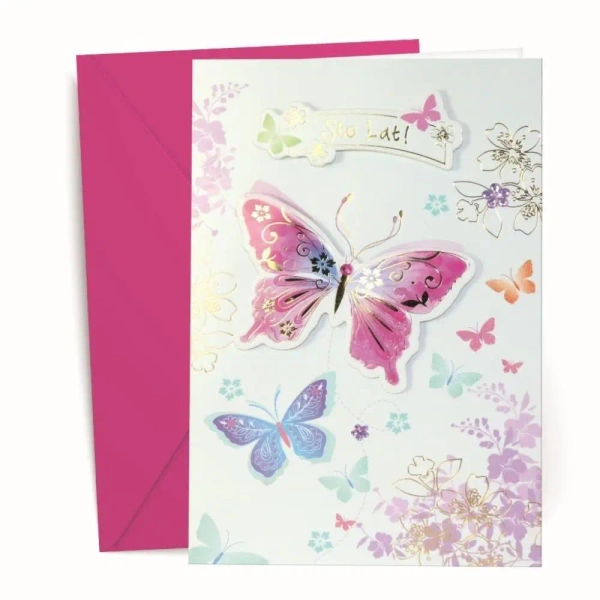 Kartka z kopertą, z życzeniami na różne okazje. Opakowana folią open.