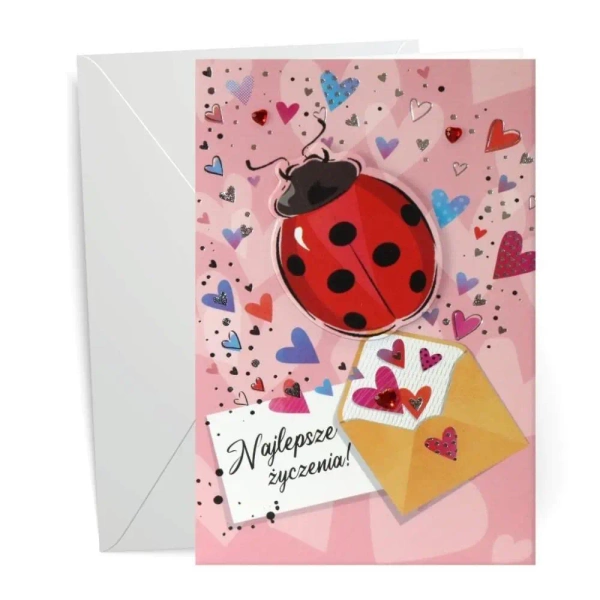 Kartka z kopertą, z życzeniami na różne okazje. Opakowana folią open.