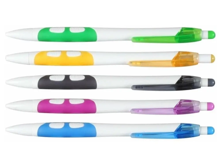 Plastikowy długopis, automatyczny, ergonomiczna obudowa z uchwytem antypoślizgowym, wymienny wkład F-411, grubość linii 0,5 mm, miks kolorów wysyłany losowo.