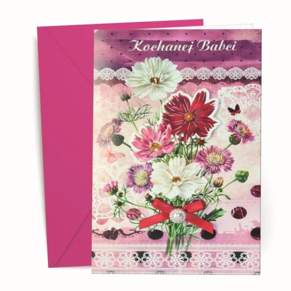 Kartka z kopertą, z życzeniami dla Babci. Opakowana folią open.