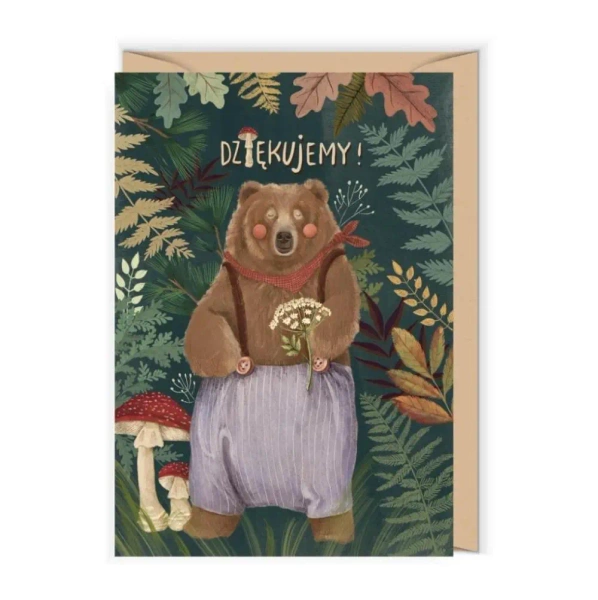 Otwierana kartka, pusta w środku, wykonana na papierze (z certyfikatem EFC) z wyraźnie widoczną fakturą. W zestawie ekologiczna koperta.