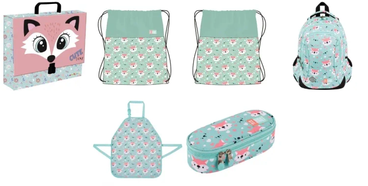 Plecak szkolny 3 komorowy + piórnik+ worek + teczka+ fartuch ST.RIGHT lisek
