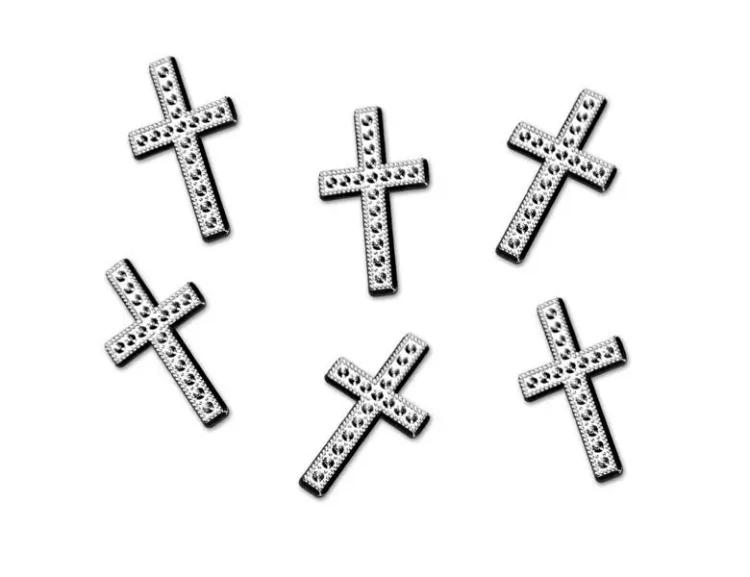 Aplikacje Krzyż srebrny 27mm 25szt - PartyDeco