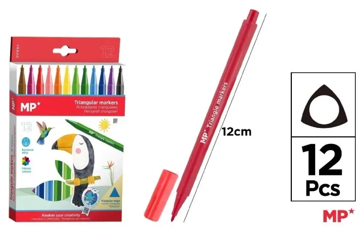 Flamastry szkolne trójkątne 12 kolorów - MP Main Paper