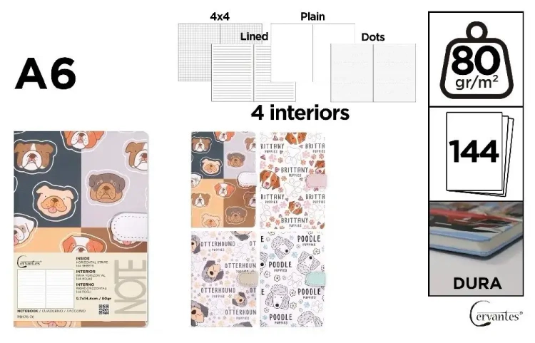 Notatnik A6/144K magnes pieski MIX - Cervantes