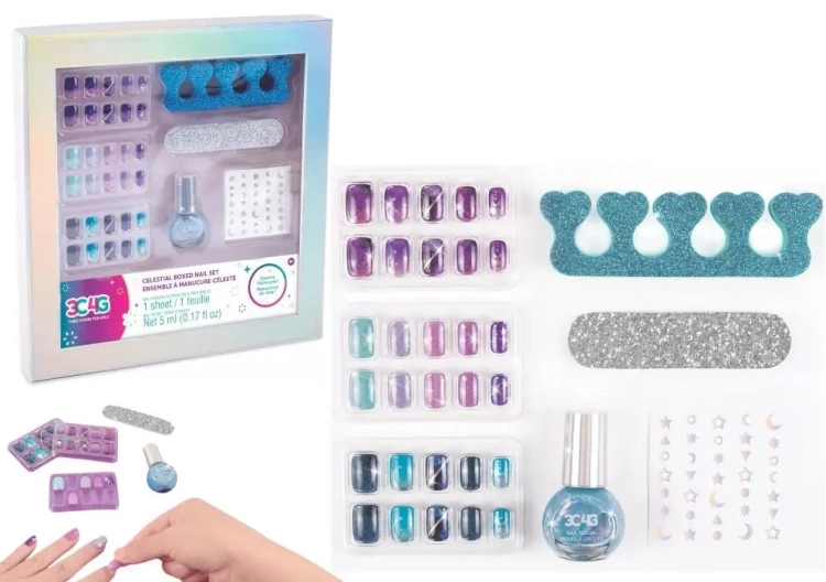 Przenieś się do świata błyszczących gwiazd i kosmicznych inspiracji dzięki zestawowi 3C4G Celestial Boxed Nail Set od Make It Real! To wyjątkowy komplet do stylizacji paznokci, który pozwoli Ci stworzyć oryginalny manicure w odcieniach błękitu, fioletu i srebra. Dzięki niemu możesz poczuć się jak prawdziwa stylistka i eksperymentować z różnymi wzorami oraz efektami.